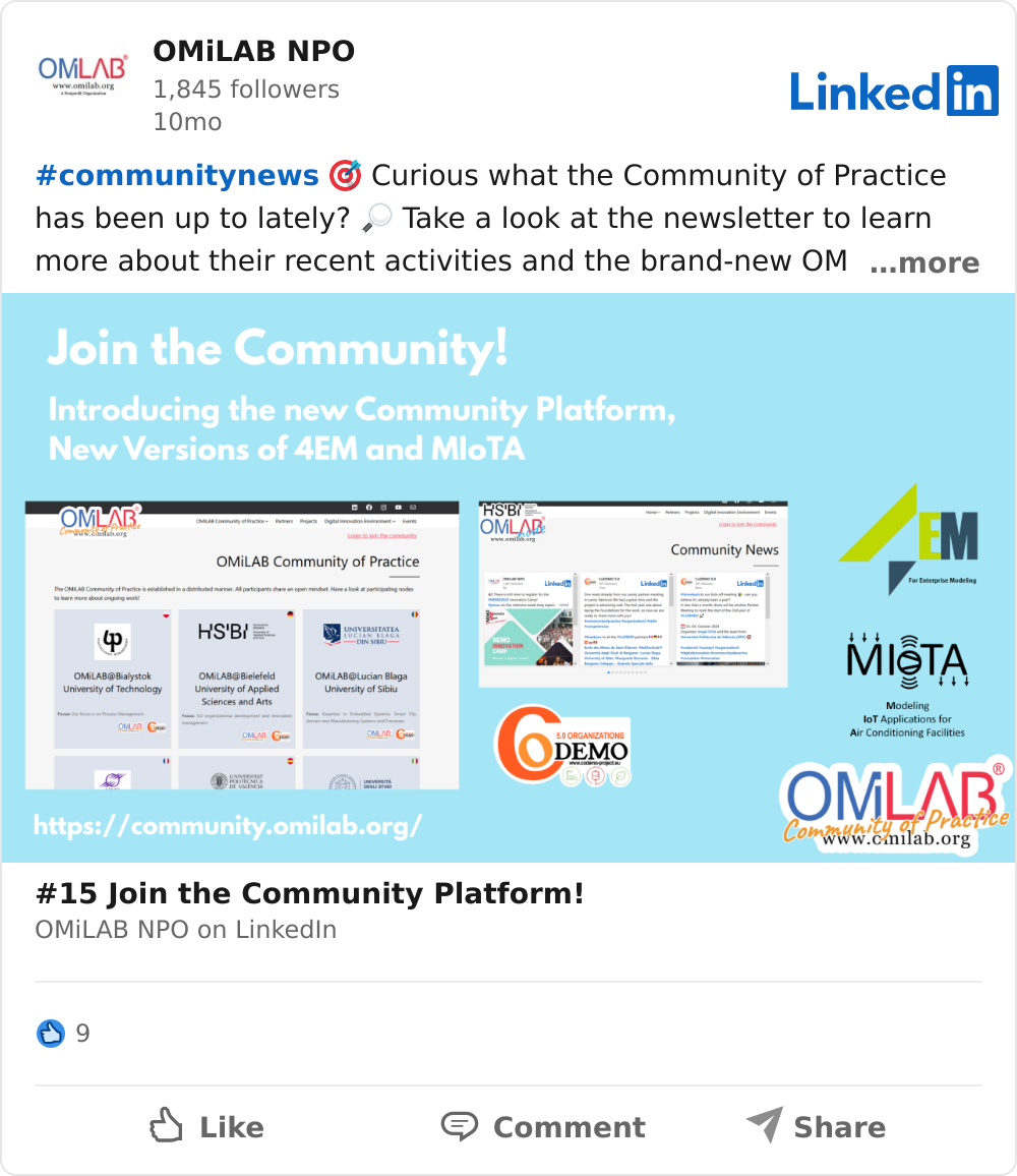 #communitynews 🎯 Curious what the Community of Practice has been up to lately? 🔎 Take a look at the newsletter to learn more about their recent activities and the brand-new OMiLAB Community Platform!