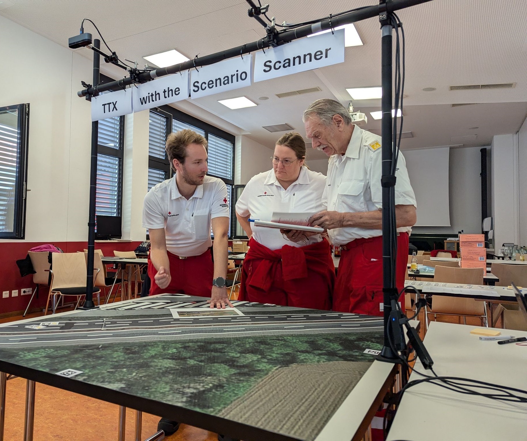 Einsatzorganisationen trainieren laufend um auf Unwetterereignisse, Großbrände, Verkehrsunfälle und nicht zuletzt Einsatzlagen mit terroristischem Hintergrund vorbereitet zu sein. Übungen spielen eine wichtige Rolle in der Aus-, Fort- und Weiterbildung von Einsatzkräften und erlauben zudem die Wirksamkeit von Einsatzkonzepten und Notfallplänen sowie die Leistungsfähigkeit von Einsatzkräften zu überprüfen. Bis dato gibt es in Österreich noch keine einheitlichen Methodiken oder Werkzeuge zur Auswertung von Erkenntnissen von Übungen. Üblicherweise überwachen Evaluatorinnen und Evaluatoren die Übungsteilnehmer:innen und halten die dabei gewonnen Eindrücke auf Checklisten und mittels Fragebögen fest. Trotz hohem Ressourcenaufwand bei der Evaluierung und Auswertung ist die Beurteilung durch Evaluierungspersonal immer subjektiv geprägt, was das Vergleichen von Ergebnissen schwierig macht.